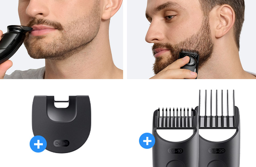 Kutu içeriği: 1 sakal düzeltici, 3 tarak, 1 ataşman, 1 temizlik fırçası