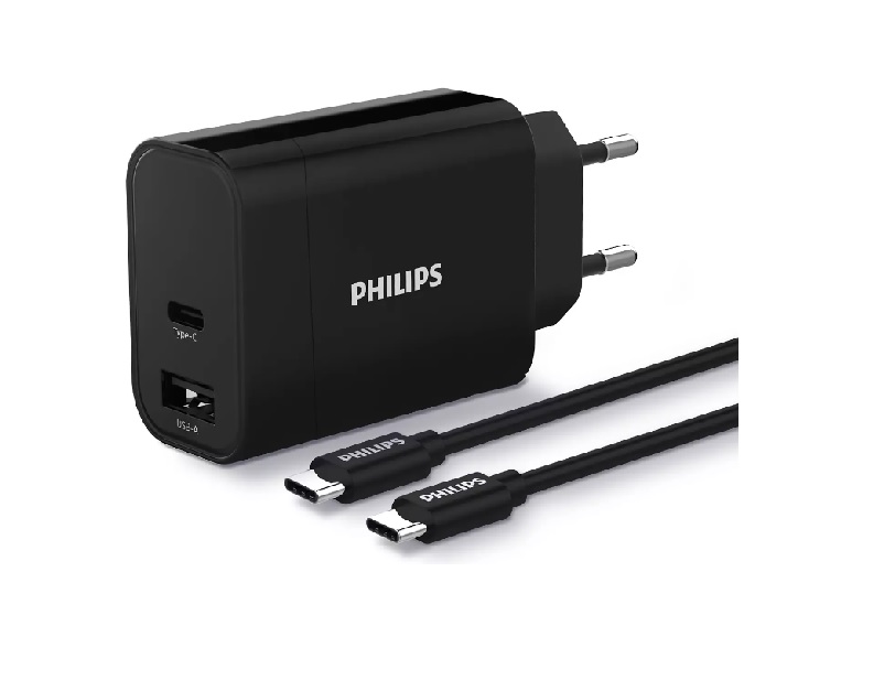 Philips DLP4326 Hızlı Şarj Aleti UsbA 18W ve Type-C 20W Çift Çıkışlı Başlık Siyah