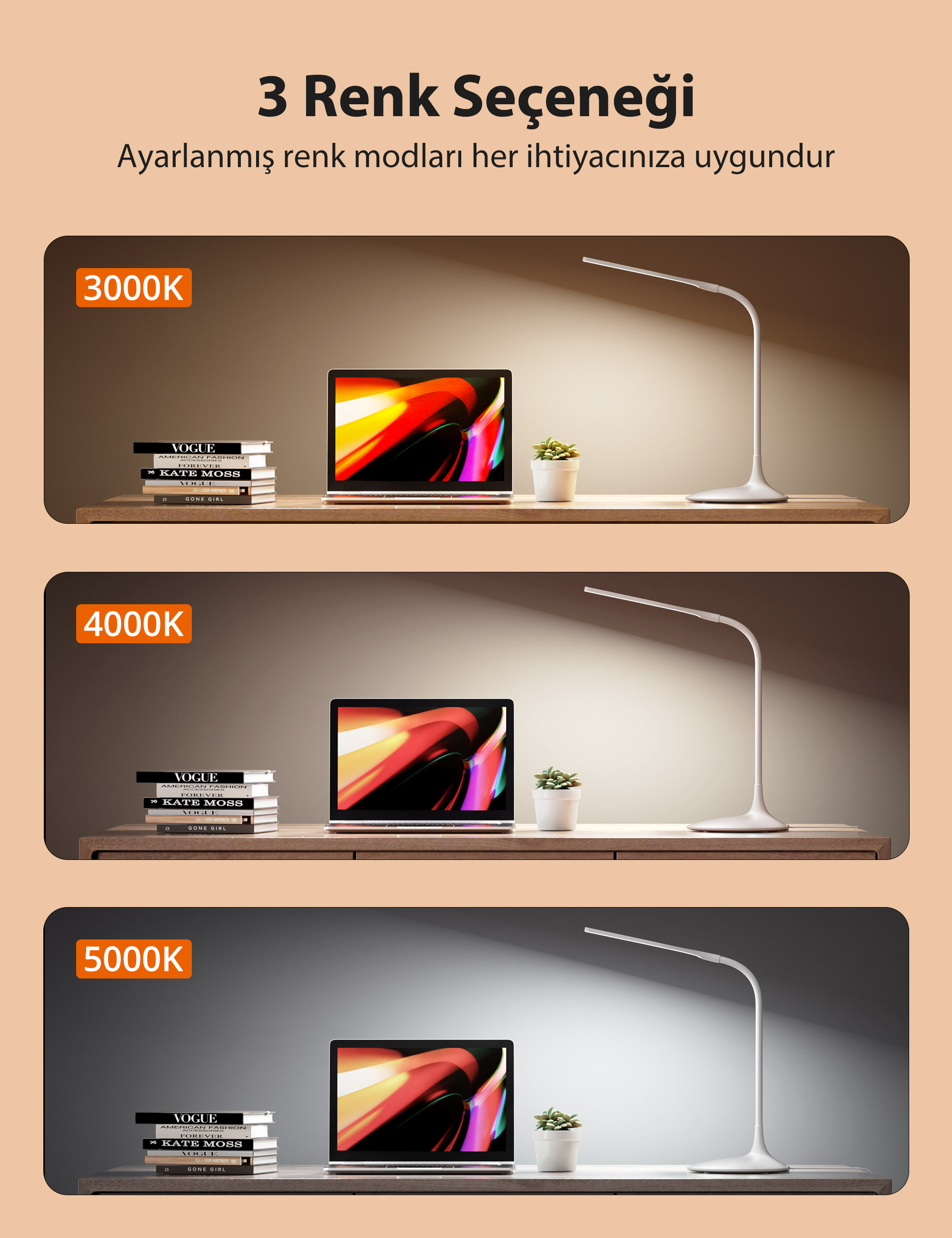- TaoTronics TT-DL1004 Esnek 3 Renk Led Masa Lambası Beyaz