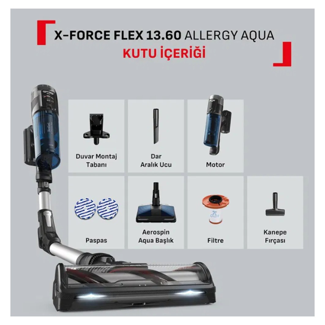 Tefal TY9AC X-Force Flex 13.60 Allergy Aqua Aerospin Kablosuz Şarjlı Dikey Elektrikli Süpürge