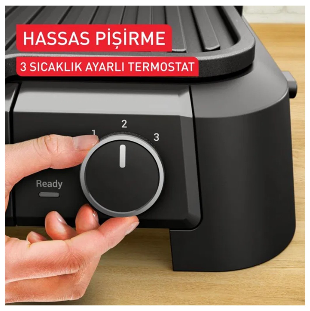 3 sıcaklık ayarına sahip ayarlanabilir termostat; et, sebze ve sandviçin kusursuz bir şekilde pişirilmesini sağlar.