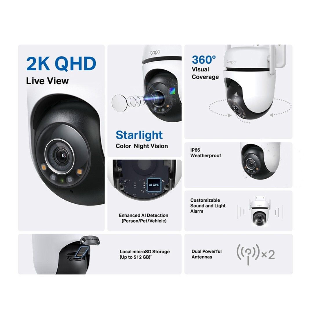 - TP-Link Tapo C520WS 2K QHD Gece Görüşlü 512GB Micro SD Destekli Wi-Fi Kamera