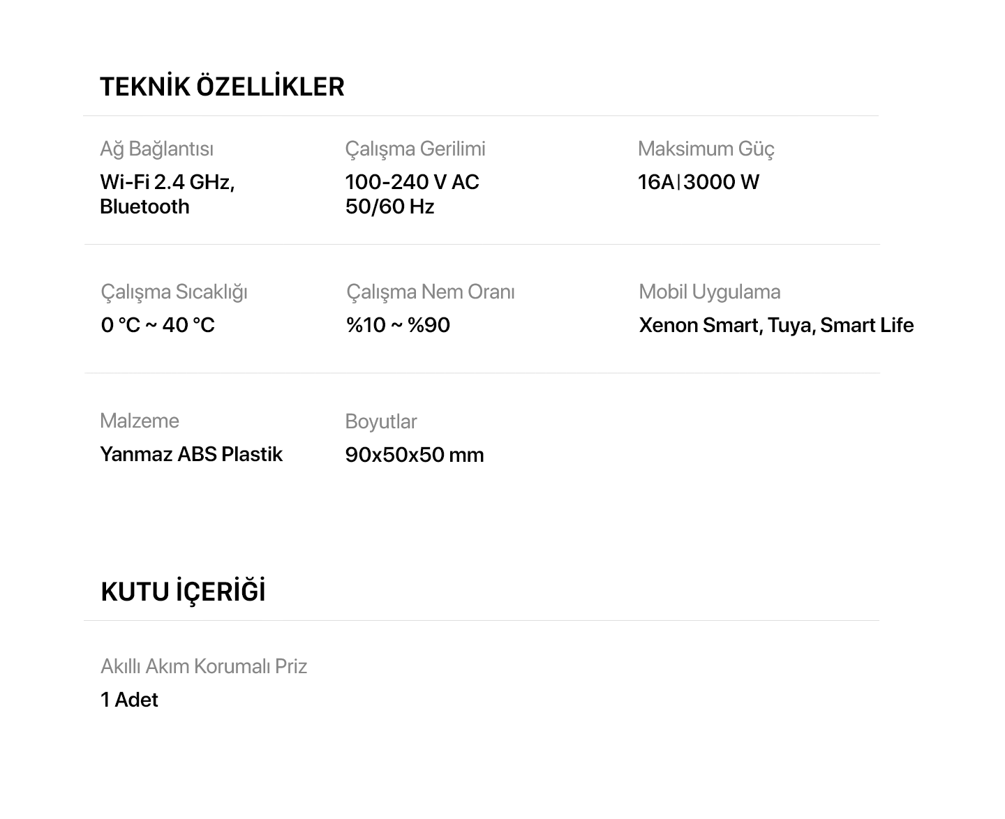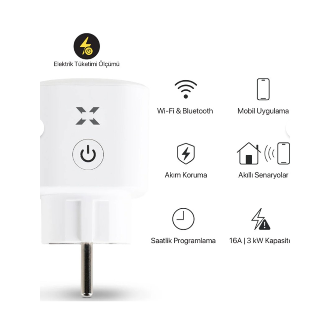 - Xenon Smart Akıllı Elektrik Prizi Enerji İzleme Özellikli, Aşırı Gerilim Koruması ve Wi-Fi Bluetooth Bağlantısı (X7010)