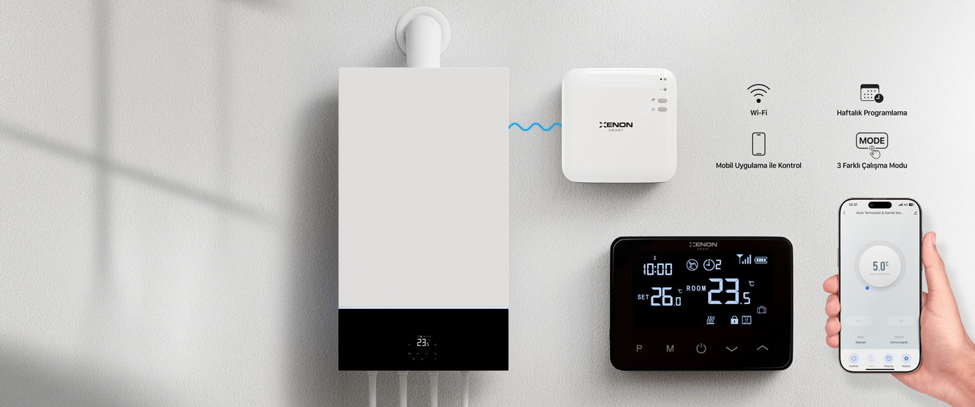 Xenon Smart Oda Termostatı Wifi, Dijital, Tasarruf Odaklı, Mobil Kontrol, Akıllı Kombi Termostatı (X7402)